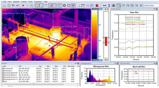 PC上的热成像分析仪通过以太网从连接到PC的摄像机接收所有像素的温度原始数据,并根据用户需要以各种方式分析温度数据。 ![]()