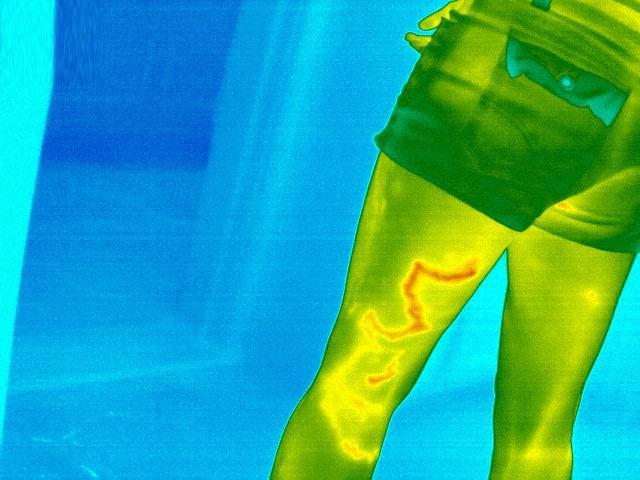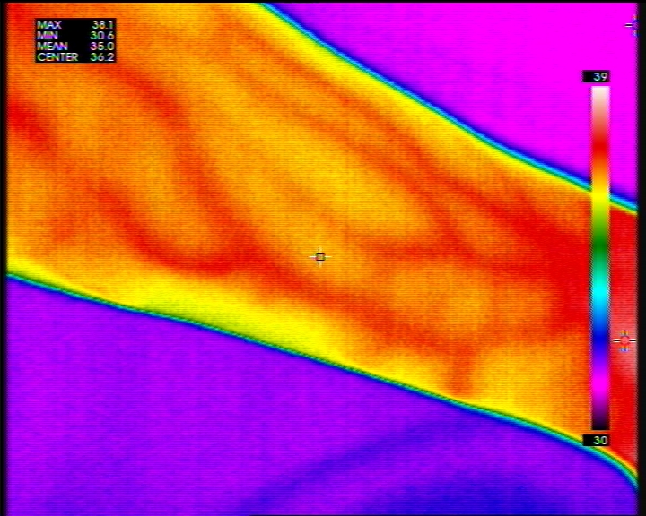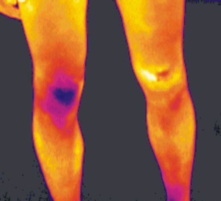 ←皮肤肌肉损伤用热像仪很容易查出冻伤、烧伤、发炎、感染等,其准确率接近100%. |
